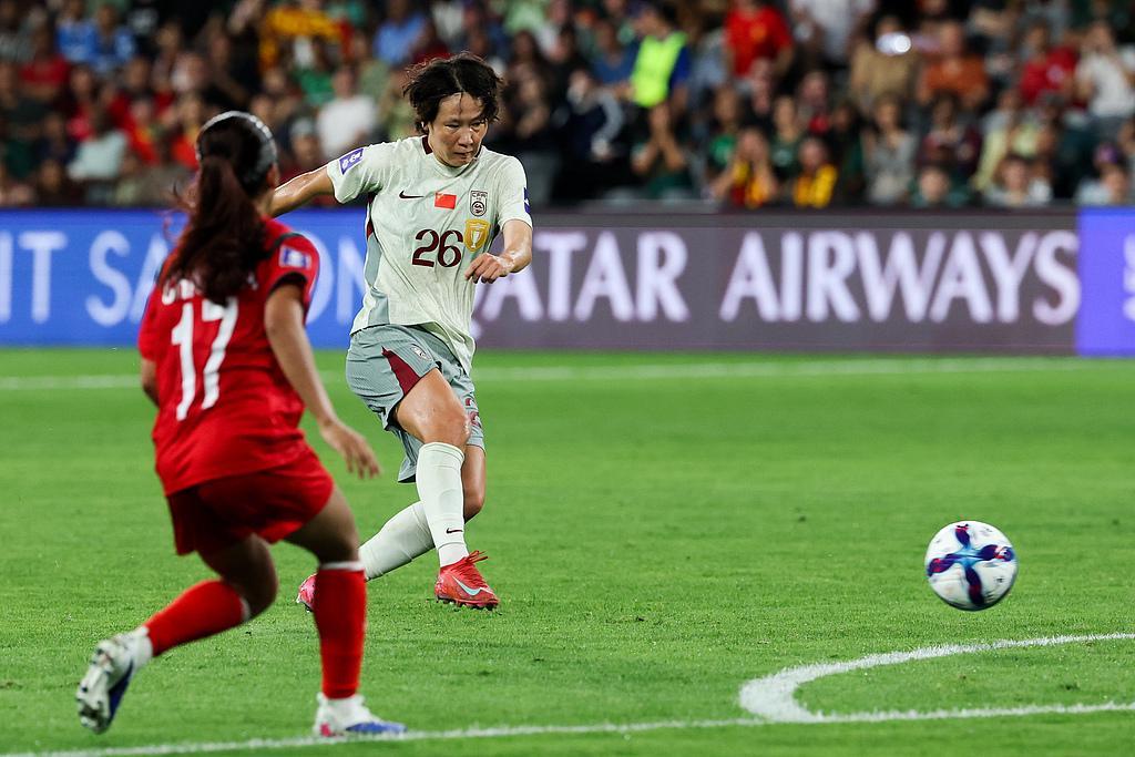 直到上半场临近结束时,中国女足终于打破僵局——第44分钟王霜远距离攻门,为中国队打开进球账户。